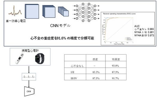 東京大学大学院医学系研究科先進循環器病学の荷見映理子特任研究員、藤生克仁特任教授らの研究グループは、SIMPLEX QUANTUM株式会社と共同で、人工知能(AI)を活用した新しい心不全の早期検出システムを開発しました。本システムは、単一誘導心電図データのみから、心不全の重症度を高精度(91.6%)で分類できることを実証しました。