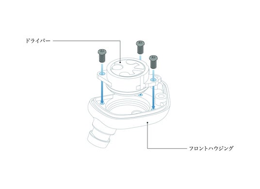また、筐体の組み立ておよびDUの取り付けに接着剤を使用せず、設計難度の高いネジ止めを採用することで長期的な修理を可能としています。A8000と比べて筐体サイズが小さくなっておりますので、耳に一層収まりやすくなっています。