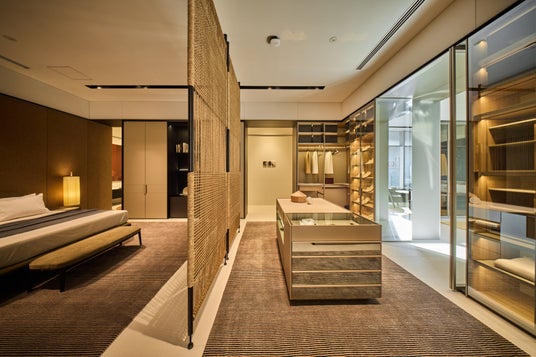 2F | Walk in Closet収納家具がブランドのルーツであることもあり、<Poliform>のシグニチャーであるシステム収納を数多く提案しています。衣類やパーソナルアイテムを機能的かつ美しく洗練された方法で収納できるよう設計された空間を体験出来ます。