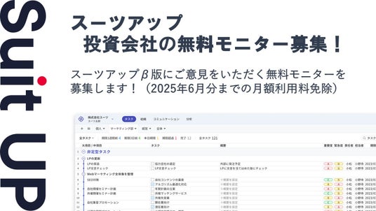 チームのタスク管理・プロジェクト管理ツール「スーツアップ」、投資会社の無料モニター募集