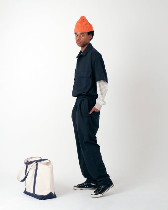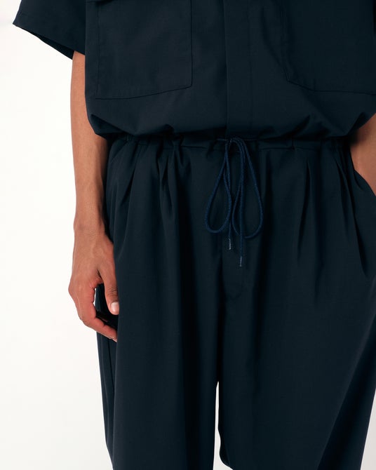is-ness 25SSのインラインで展開のあるジャンプスーツをショートスリーブ仕様で別注。