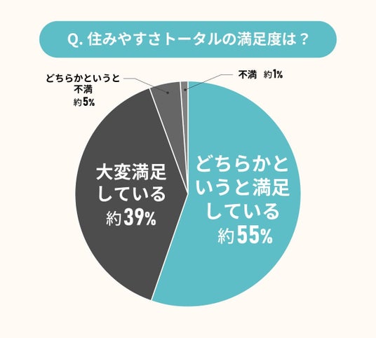 住みやすさの総合評価としては「どちらかというと満足している」が約50%、「大変満足している」が約30%と、約80%の方が満足と回答しています。「都心すぎず田舎すぎず」「交通の弁がよく、商店街も多く、閑静な住宅街もある」など、様々な要素のバランスが良いことが評価されています。