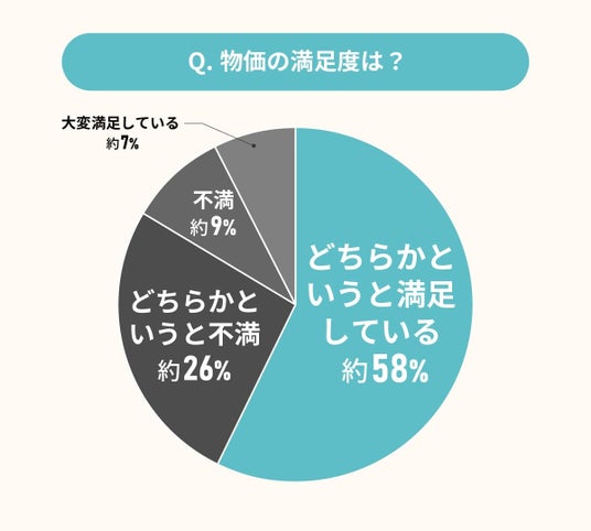 物価については「どちらかというと満足している」という回答が約50%で最も多く、「地方に比べると高いが都内では標準的」という見方が主流となっています。