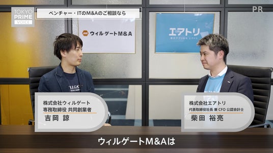 株式会社ウィルゲート 専務取締役 共同創業者の吉岡 諒が、株式会社エアトリ 代表取締役社長 兼 CFO 公認会計士の柴田 裕亮様に「ウィルゲートM&A」を利用した感想をインタビューする内容になっています。エアトリ社はグループ累計40社をM&Aし、グループ会社の3社の上場を実現しています。