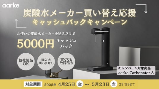 モダニティ株式会社 (代表取締役:VERIN REGIS PIERRE、所在地:東京都港区東麻布1-23-5 PMCビル3階) は、スウェーデン発プレミアムキッチンブランドaarke(アールケ)の人気炭酸水メーカー「Carbonator 3」をModernity Storeでご購入の方を対象に、旧炭酸水メーカー(他社商品・故障品可)を下取りで5,000円をキャッシュバックする「炭酸水メーカー買い替え応援キャンペーン」を2025年4月25日(金)より開催いたします。