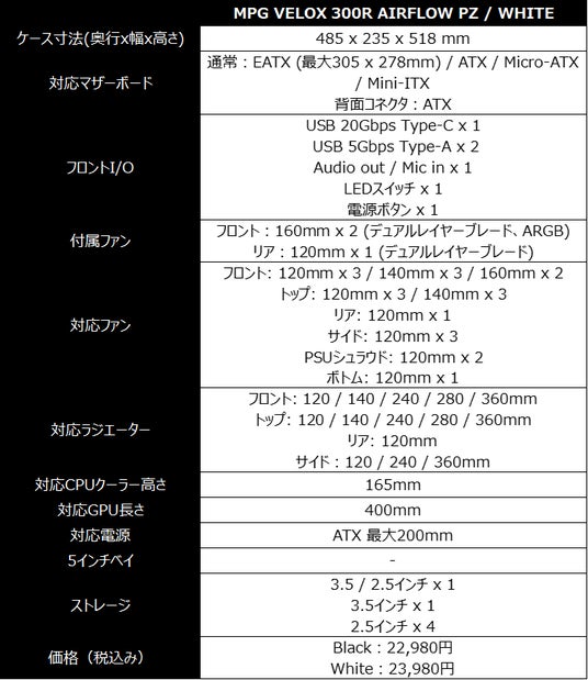 ■製品URL:https://jp.msi.com/PC-Case/MPG-VELOX-300R-AIRFLOW-PZ