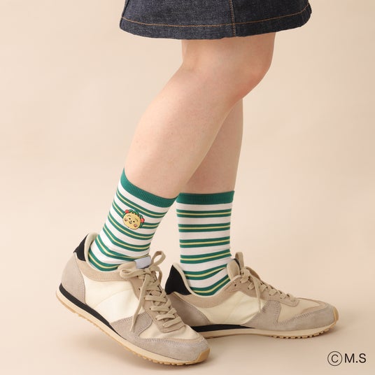 マルチボーダーのソックスに刺繍をON。コジコジを思わせる柄の配色にもご注目。
