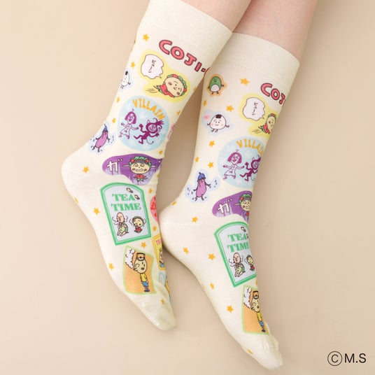 原作マンガの一コマをプリントネームタグで表現。ベースのアメリブソックスはコジコジのキャラクターカラーをイメージした配色になっています。