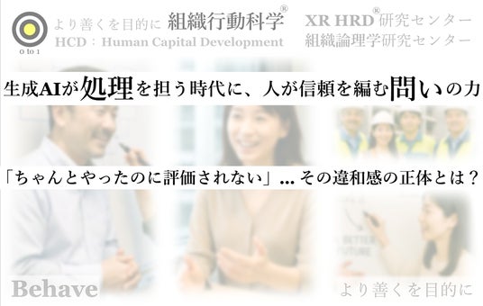 組織行動科学(R)のリクエスト株式会社(本社:東京都新宿区、代表取締役 甲畑智康)は、【「ちゃんとやったのに評価されない」の、その奥にある構造 ~ 生成AIが“処理”を担う時代に、人が信頼を編む“問い”の力~】行動アンラーニング(R)を2025年4月25日に公開しました。