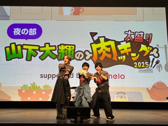 イベント開始の合言葉をコールする際には、山下の「レッツ大盛り…」の掛け声に会場もオンライン参加の視聴者も一体となり「肉ッキング!」とコール。ゲスト2人の番組登場回のVTRを観ながら和気あいあいとトークを展開。視聴者から「すごい賑やかw」「腹抱えて笑いましたこの時」「わんぱくすぎるてwwwww」などの反応が集まりました。