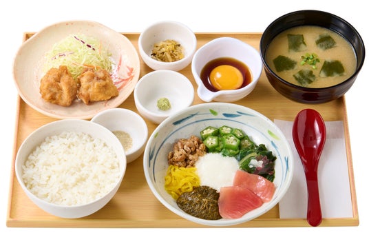 このたび「やよい軒」では、愛媛県産の“アカモク”を使用し、食感・見た目・栄養すべてにこだわった『アカモクねばとろ定食』950円を5月9日(金)より販売いたします。まぐろや海藻、納豆・とろろ・オクラなどのねばねば食材とともに、卵黄・だし醤油を混ぜ合わせて味わう、体も喜ぶ贅沢な一品です。ジューシーなから揚げが付いた『アカモクねばとろとから揚げの定食』1,080円、今年新登場となる『アカモクねばとろと焼魚の定食』1,180円も登場。栄養バランスはもちろん、ボリュームもしっかりと満足できる定食をご用意しました。