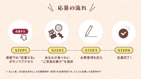 『お菓子コレクション~ご褒美お菓子グランプリ~』イベント開催ページでは、4月25日(金)~5月18日(日)のイベント中に人気投票を開催。