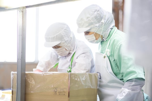 柴田(以下:柴) 段ボール箱を組み立てたり、調理された魚を種類ごとに箱詰めしたり、日によっていろいろな作業をしています。魚の種類によって詰め方や個数が違うので、よく確認を取りながら進めています。どの仕事も簡単なようで難しく、だからこそ楽しいです。