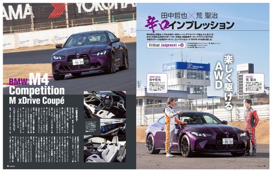 田中哲也と荒聖治、いずれも当代一流のレーシングドライバーである。そんな2人だからこそ語れる本音のスポーツカーの性能。テストの場所は筑波サーキット。ここを走らせて素性を見破る。今回は「 BMW M4コンペティション 」を走らせた。