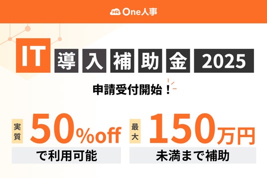 One人事株式会社(本社:東京都品川区、代表取締役社長:唐沢雄三郎)は、「IT導入補助金 2025」においてIT導入支援事業者として採択され、補助対象ITツールにワンストップ人事労務システム「One人事」が認定されたことをお知らせします。