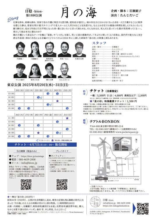 日穏-bion- 第18回公演『月の海2025』が下記の通り3都市にて上演されます。