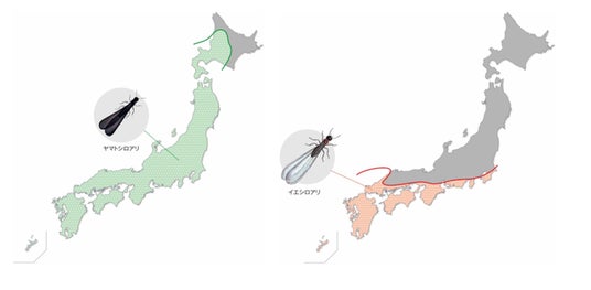 ・ヤマトシロアリ︓北海道北部を除く日本全土に分布