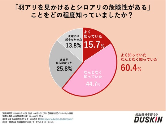・羽アリを危険だと認識できている人は15%に。知らなかった層が約4 割と大きく上回る。