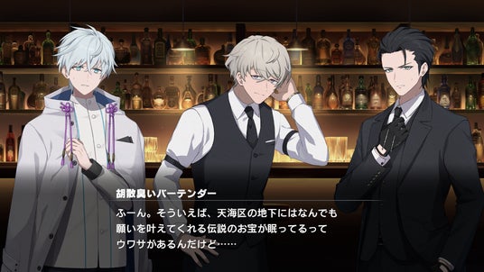 物語の後半では、狛浪組を救うためバーテンダーとして働きながら、キャラクター達と交流し情報を収集も行う。酒の席でこぼれ落ちた本音を見逃すな……!