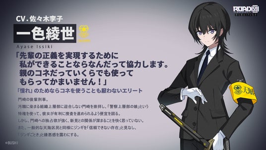 ビジュアルノベルゲーム「ROAD59 -新時代任侠特区- 摩天楼モノクロ抗争」に登場する新キャラクターのプロフィールとキャスト情報を公開しました。