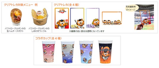クリアトレカ対象のバファローズ☆ポンタコラボメニューを購入した方に、購入特典として、全4種のクリアトレカの中からランダムでお渡しします。また、対象の飲み物コラボメニューを購入した方には、コラボカップでお渡しします。デザインは全4種類からお選びいただけます。