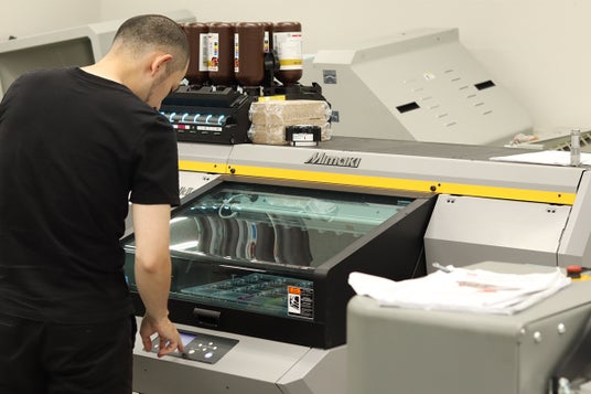 ※同じ絵柄を毎朝印刷することで色の出方を確認し、ムラが無いようにテストすること。印刷は通常、CMYKという4色のインクが重ねて表すが、インクののり具合はその日の湿度や温度によって出方が変わるため、毎朝評価用の印刷を行うことで色の出方を見て、美しい色がでるように機械を調整。
