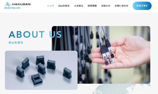 採用サイトでは、求職者の皆さまが白山をより深く知り、ご自身に合った職種を見つけやすいよう、以下のコンテンツを掲載しています。- 会社情報:白山の使命やビジョン、主力製品の概要など
