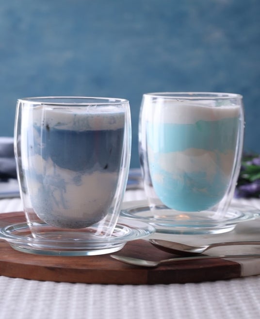 鮮やかなブルーのバタフライピーティーとミルクの織りなすまろやかな味わいの雲のようにひろがる生クリームがユニークなドリンクです。