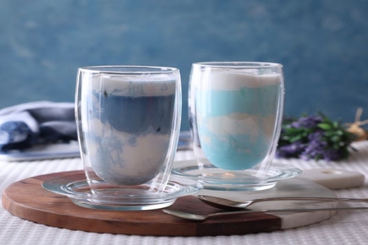 左:ブルークラウドラテ 右:ブルースカイマルガリータ(アルコール)