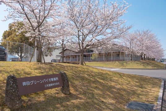 大麦乳酸発酵液GABAの製造拠点である拝田グリーンバイオ事業所。春には、自然との調和を物語るように、構内の桜が美しく咲き誇ります(写真提供:三和酒類株式会社)