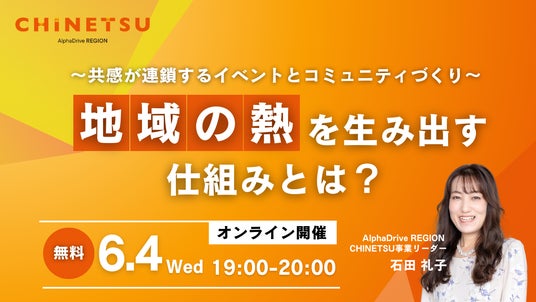 株式会社アルファドライブ(本社:東京都千代田区、代表取締役社長 兼 CEO 麻生要一、以下「AlphaDrive」)は、地域におけるビジネスパーソンの成長や挑戦する人々を支え、長期的な地域の発展をもたらすためのイベント・コミュニティ支援策として、新サービス「CHINETSU」事業の提供を開始したことをお知らせいたします。