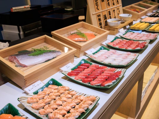 夕食バイキング 鮪ほか新鮮魚介の寿司コーナー(一例)