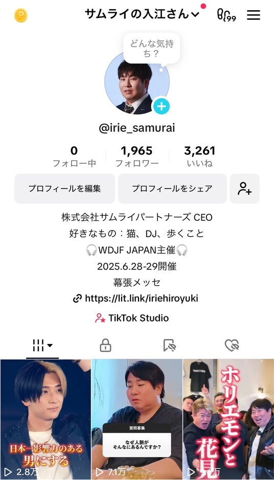 サムライパートナーズ代表取締役:入江のTikTokアカウントの
