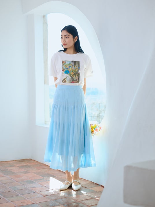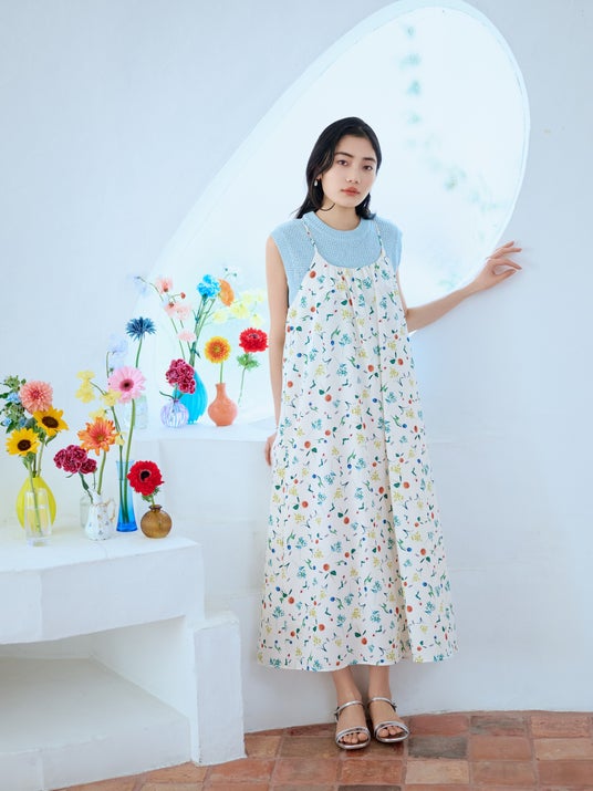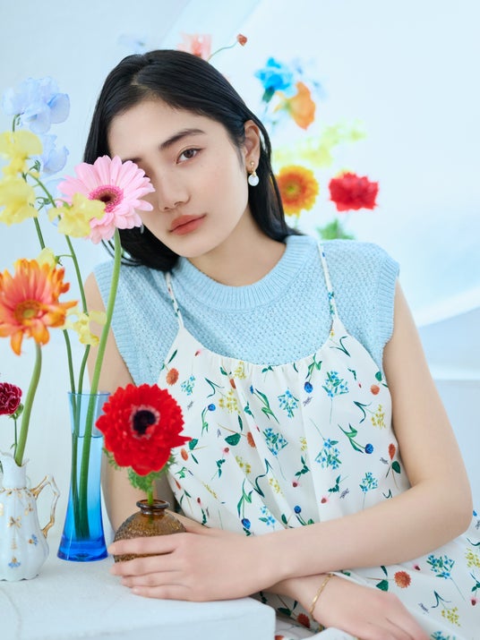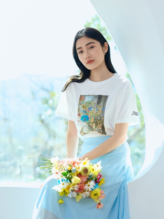 今回のコラボレーションでは、オリジナルプリントを施したキャミワンピースとブラウスに加え、美しいフラワーフォトをプリントしたTシャツを展開いたします。
