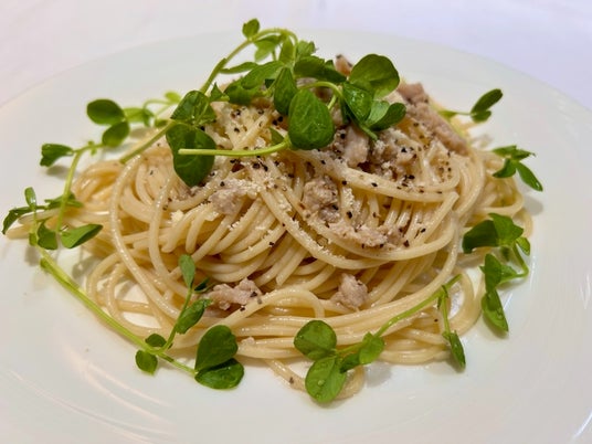 「豆苗とツナのパスタ」