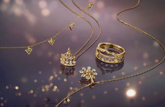 遊園地のアトラクションをモチーフに、イエローゴールドと華やかなカラーストーンが魅力のジュエリーが登場。本物のメリーゴーランドのような立体感と落ち着いたカラーリングのストーンの存在感が目を惹くネックレスや、観覧車をモチーフにした回転ギミック付きネックレスや、バイキングを思わせる揺れるピアスなど、多彩なデザインが登場。繊細な装飾とホワイトトパーズの透明感のある輝きに、遊び心をプラスした唯一無二のデザインに仕上げました。ジェットコースターのレールをイメージしたボリューム感のあるリングとバングルは、カラフルながらも落ち着いた色合いのストーンを上品にセッティング。手元から大人の魅力を演出します。