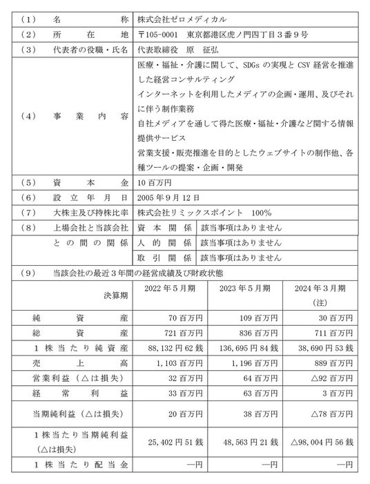 株式会社ユカリア(本社:東京都千代田区、代表取締役社長:三沢 英生、以下「ユカリア」)は、株式会社リミックスポイント(本社:東京都港区、代表取締役社長CEO:高橋 由彦、以下「リミックスポイント」)の連結子会社である株式会社ゼロメディカル(本社:東京都港区、代表取締役:原 征弘、以下「ゼロメディカル」)の全株式を取得し、完全子会社化することを2025年4月25日の取締役会において決議いたしましたのでお知らせします。