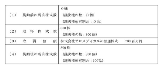 【ユカリア】株式会社ゼロメディカルの株式取得(完全子会社化)に関するお知らせ