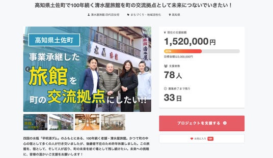 【AlphaDrive高知】「清水屋旅館」クラウドファンディング支援額が150万円(50%)を突破