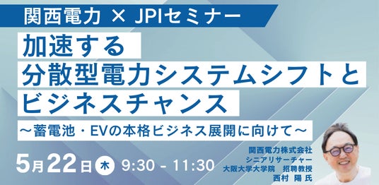 JPI(日本計画研究所)は、関西電力株式会社 シニアリサーチャー 西村 陽 氏を招聘し、加速する分散型電力システムシフトとビジネスチャンスについて詳説いただくセミナーを開催します。