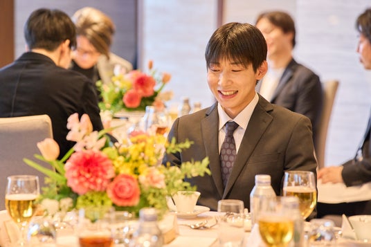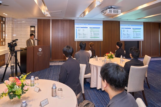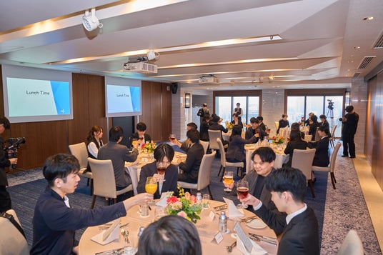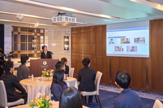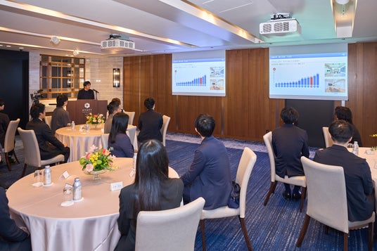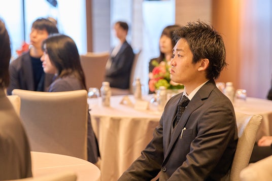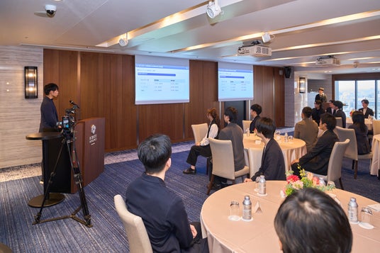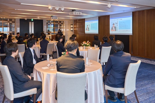 入社式は、新卒社員が会社でどのような成長機会を得られるかを具体的にイメージできる内容となっており、昨年入社した先輩社員が1年間で残した成果や取り組みについて共有されました。