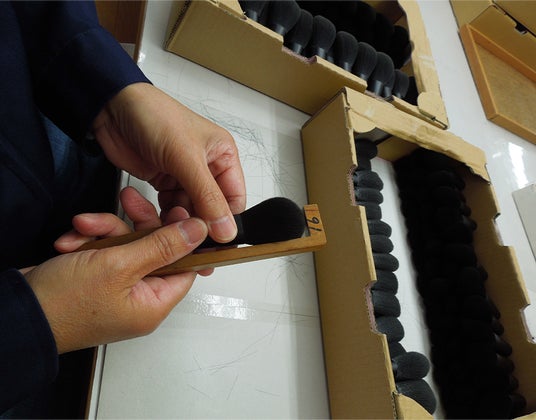極細毛が高密度に集まったブラシはまさに職人技。