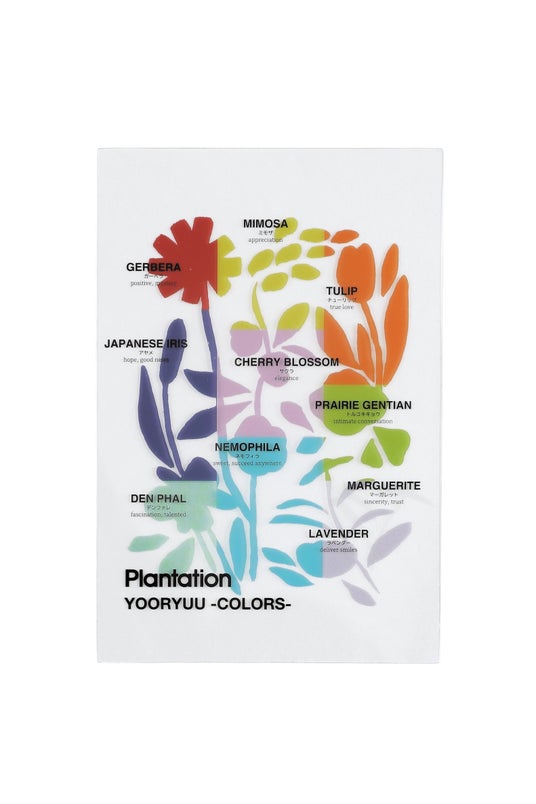 <上記店舗とPOP UP SHOPでは、YOORYUU-COLORS-をお買い上げいただいたお客様および、PlantationのInstagramオフィシャルアカウント(@plantation1982)をフォローしていただいたお客様に「YOORYUU-COLORS-クリアしおり」を差し上げます。