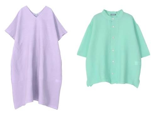 (左)YOORYUU ワンピース ¥36,300(税込)(右)YOORYUU シャツ ¥29,700(税込)※YOORYUUシャツはユニセックスサイズもございます。