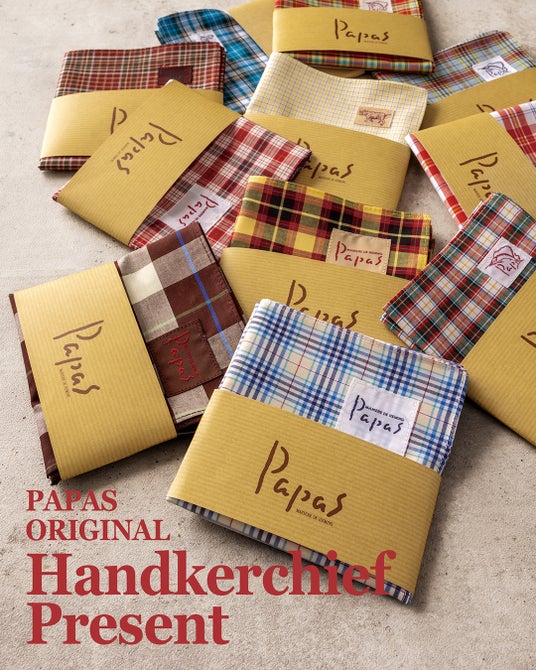 期間中、パパスショップにて税込40,000円以上お買い上げいただいたお客様に、パパスオリジナルのハンカチをプレゼントいたします。