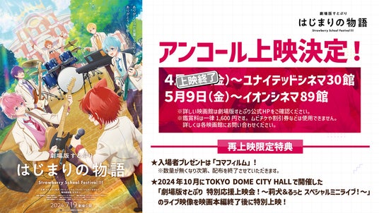 2024年7月19日(金)から全国公開してきた『劇場版すとぷり はじまりの物語~Strawberry School Festival!!!~』がリスナー(ファンの呼称)のみなさまからの多くの希望の声を受けてアンコール上映が決定いたしました。