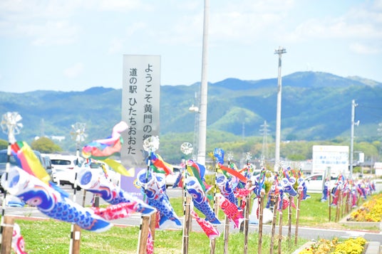 道の駅ひたちおおたでは、ゴールデンウィーク期間中に様々なイベントを開催いたします。道の駅の沿道に飾られた元気なミニ鯉のぼりと共に皆様のご来場をお待ちしています。