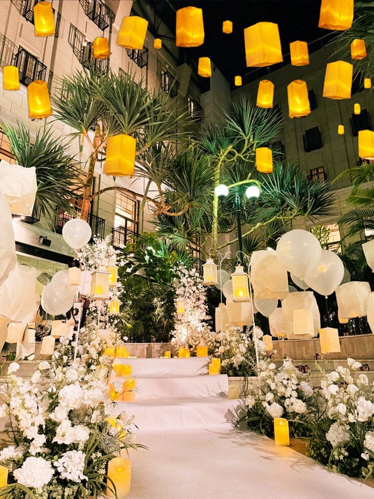 バルーンランタンやキャンドルなどの演出を施したナイトウエディングも人気。