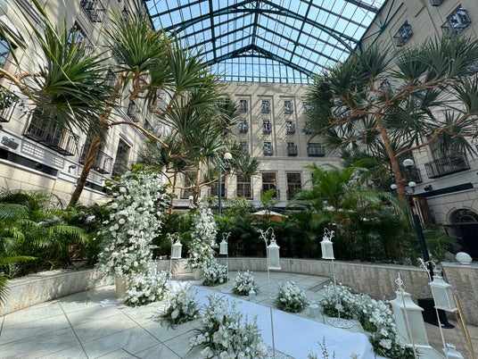 まるで屋外とも感じることのできるアトリウムでの全天候型ガーデンウエディングも叶うメインステージもご用意しております。