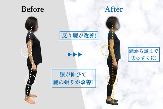 当店の1人目のお客さまだった彼女は、60年間まったく運動をしたことがなく、猫背やX脚のほか、「肩やひざが痛い」といったからだのお悩みを抱えていました。